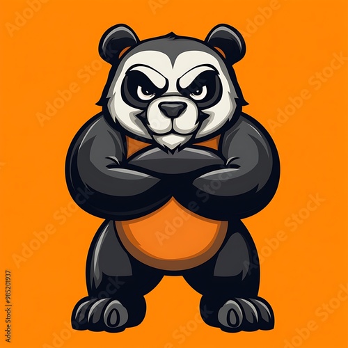 Obraz premium Angry Cartoon Panda Bear Mascot with Crossed Arms Illustration
