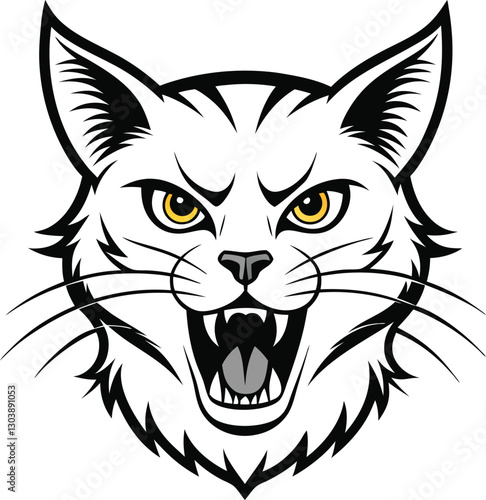 © Ahsan, Obraz premium Angry Cat Face Silhouette.