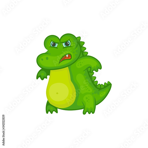 Fototapeta premium Angry crocodile baby isolated on white background - green cartoon alligator