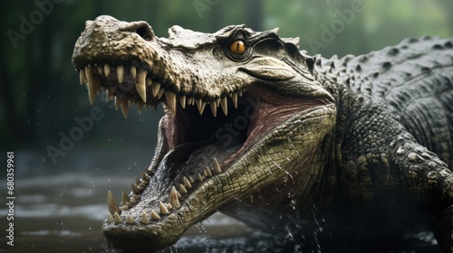 Obraz premium angry crocodile background wallpaper ai generated