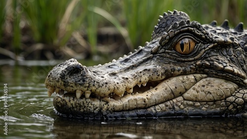 © Prashant, Fototapeta premium angry crocodile macro shot , eyes of crocodile