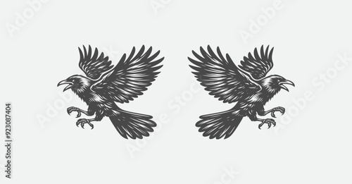 © The Grafiosi, Obraz premium Angry crow flying attack hand drawn