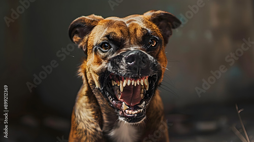 © john, Obraz premium Angry dog snarling at the camera. Aggressive dog shows dangerous teeth.