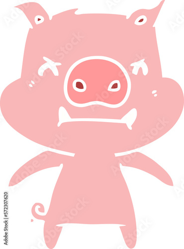 © lineartestpilot, Fototapeta premium angry flat color style cartoon pig