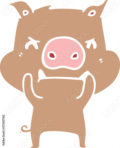© lineartestpilot, Naklejka premium angry flat color style cartoon pig