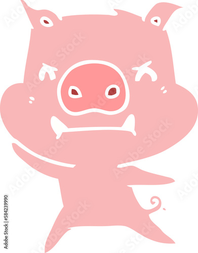 © lineartestpilot, Naklejka premium angry flat color style cartoon pig