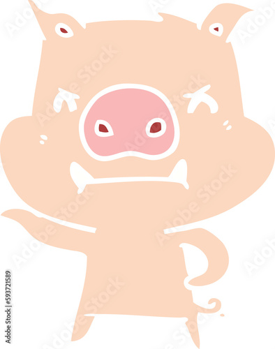 © lineartestpilot, Fototapeta premium angry flat color style cartoon pig