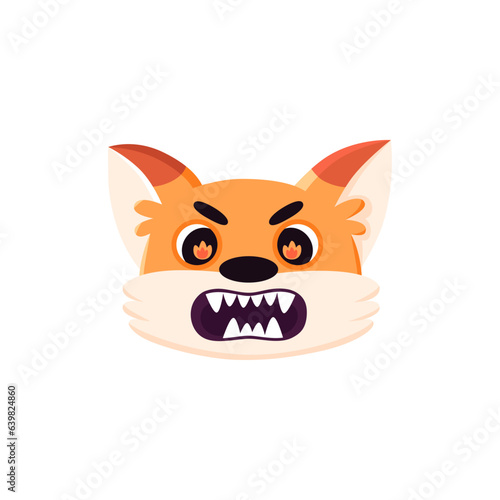 Obraz premium Angry fox face. Animal portrait with fire in your eyes. Aggressive Cartoon character. Flat vector illustration isolated on white background