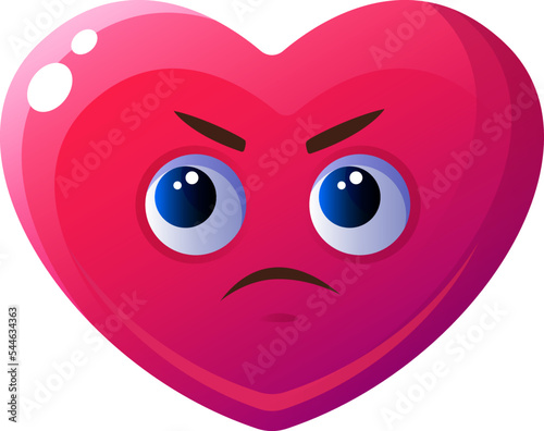 © Mykola Syvak, Obraz premium Angry funny cartoon heart flat icon 3d pink emoji