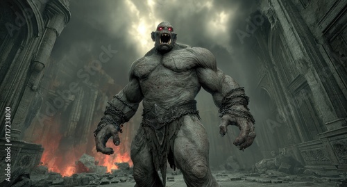 © Casual, Fototapeta premium Angry Giant Monster in Ruins.