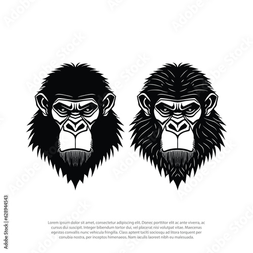 Fototapeta premium Angry gorilla head, apes head, Monkey vector template logo. Black and white logo isolated. Vector illustration, ferocious.