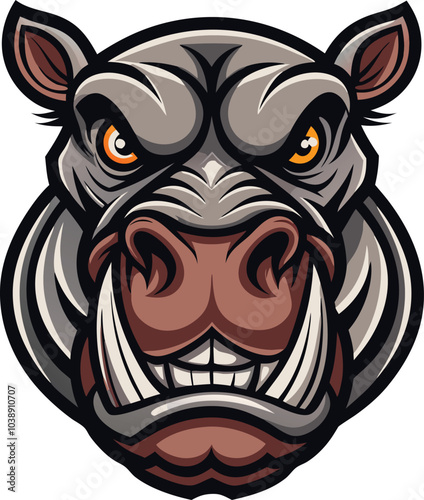 © AI DESIGN 0, Obraz premium Angry Hippopotamus Mascot Cartoon Illustration