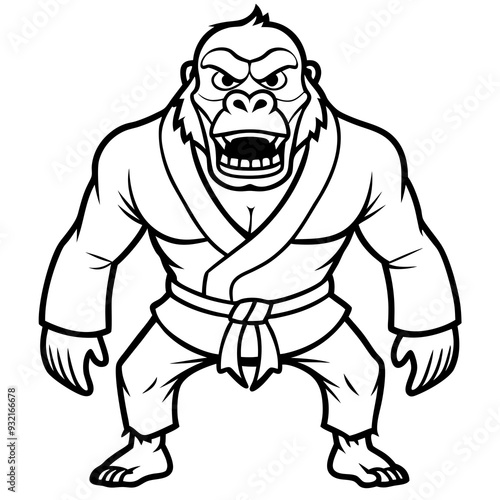 Obraz premium Angry Karate gorilla White Background line art vector illustration