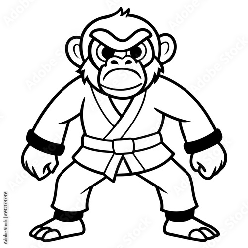 Obraz premium Angry Karate monkey White Background line art vector illustration