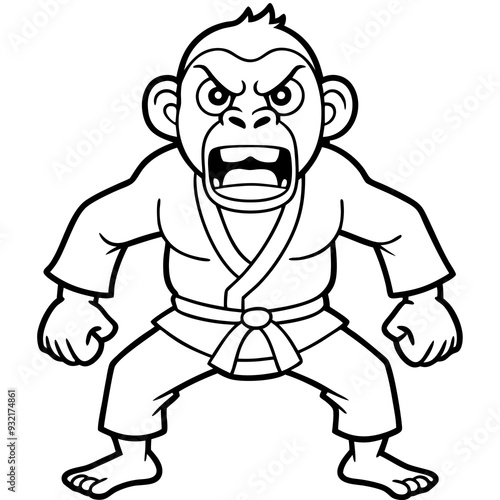 Obraz premium Angry Karate monkey White Background line art vector illustration