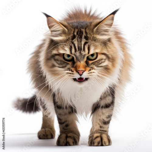 © bomoge.pl, Obraz premium Angry Kurilian Bobtail Cat Hissing Aggressively on White Background
