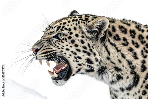 © Sweety, Obraz premium Angry leopard head on white background generative AI GENERATE