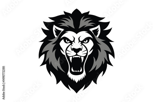 © Mahinur, Fototapeta premium angry lion head silhouette on white background