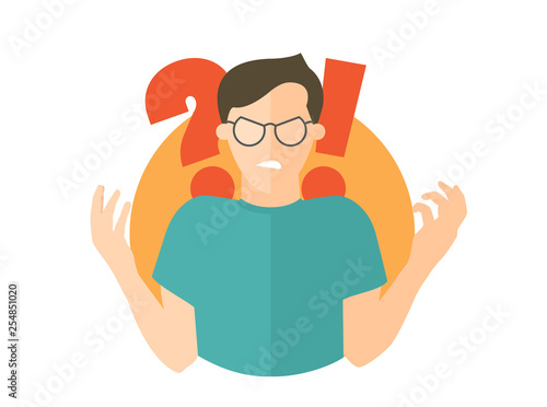 Obraz premium Angry man in glasses. Guy in rage. Flat design icon. Isolated illustration