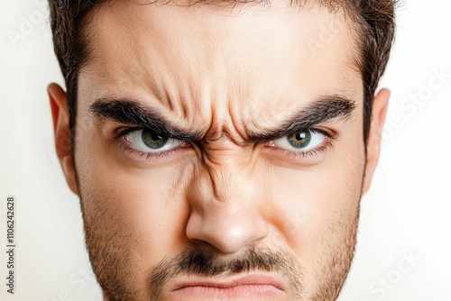Fototapeta premium Angry man's close-up face, furrowed brows.