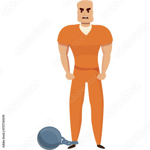 Fototapeta premium Angry Muscular Prisoner in Orange Jumpsuit with Ball and Chain Standing Against White Background Low Angle View Vector Art