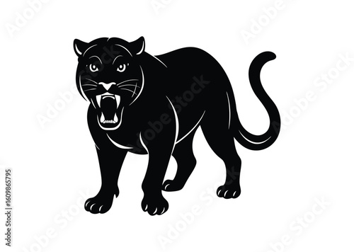 © AIStore, Fototapeta premium Angry panther silhouette black vector white background