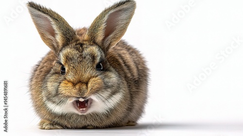 © CLOVER BACKGROUND, Obraz premium Angry Rabbit with Ears Tilted Back Baring Tiny Teeth in Close-Up
