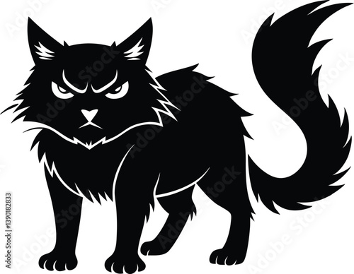 Obraz premium Angry Ragdoll Cat Silhouette Vector Symbol Icon on White Background.