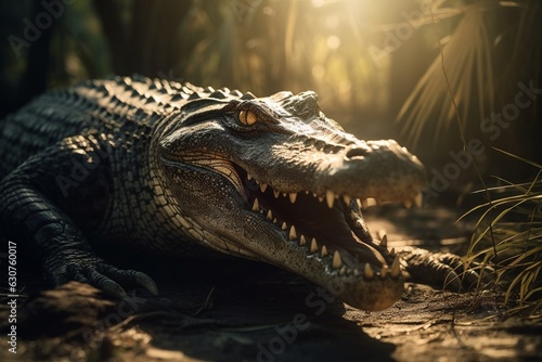 Obraz premium Angry roaring Alligator, Generative Ai
