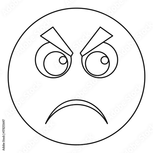 © anatolir, Obraz premium Angry smile icon vector thin line
