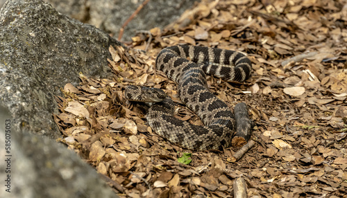 Fototapeta premium Angry Snake Starts to Coil Alongside the Tuolumne River Trail