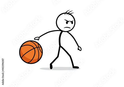 © Digital, Fototapeta premium Angry Stick Figure Basketball Player Illustration: Cartoon Character Vector