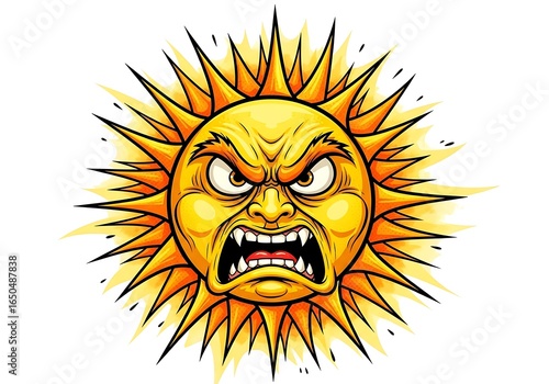 © mfnmedia, Fototapeta premium Angry Sun Face Illustration Fierce Expression Graphic Design.