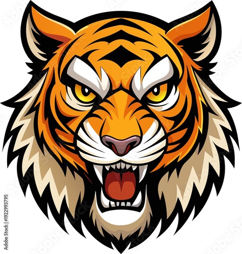 © MD FAHIM, Fototapeta premium Angry tiger face isolated. Head front view. an white background.