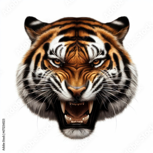 © Igor, Fototapeta premium angry Tiger Face Shot Isolated on White Background. ai generative