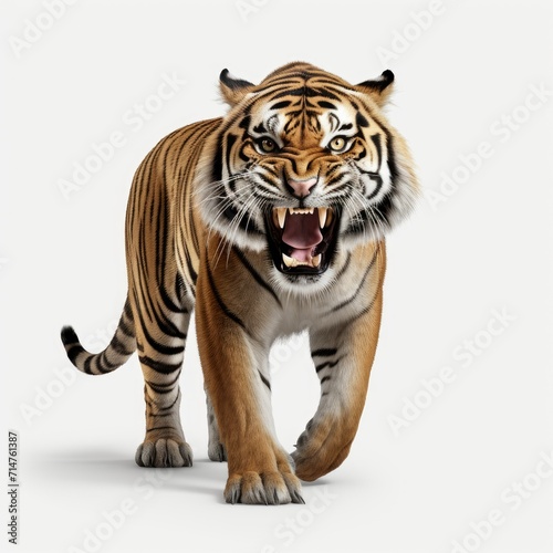 © ardanz, Obraz premium Angry tiger roaring, isolated on a white background.