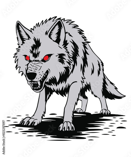 © creative-craft, Obraz premium angry wolf vector art illustration with white background