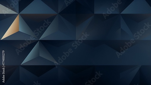 © Huzaifa, Obraz premium Angular Ambiance: Dark Blue Panoramic Banner with Triangular Patterns