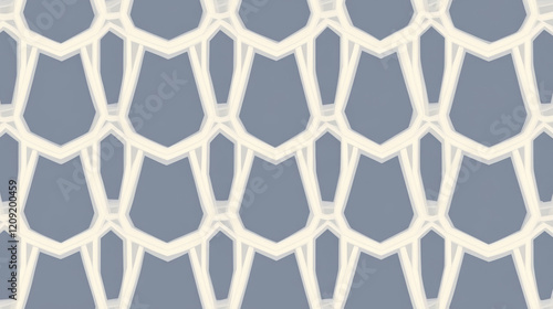 Naklejka premium Angular hexagons form seamless, edgy, and sharp tiling pattern with modern geometric design in soft gray and white tones, creating contemporary and stylish aesthetic