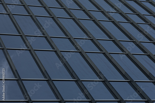 Fototapeta premium Angular view of glass building wall reflecting sky