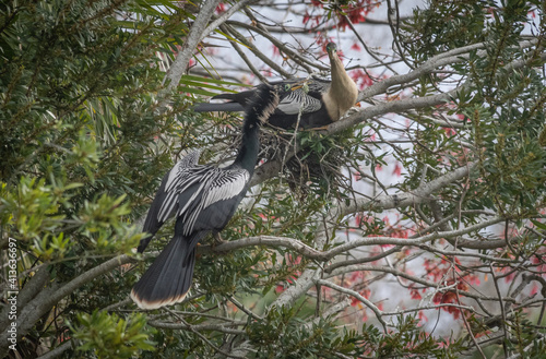 © robitaillee, Naklejka premium Anhinga bird building a nest