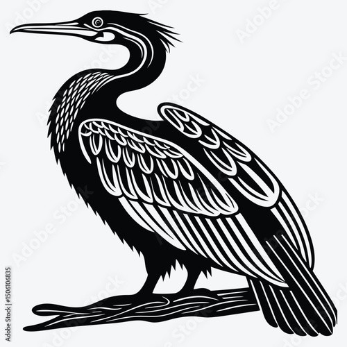 © lokshmon, Fototapeta premium Anhinga line art White background illustration Generative Ai