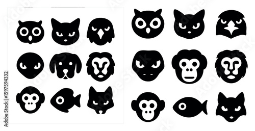 © Coosh448, Obraz premium Animal and wildlife silhouette icons set – filled, nature, creature symbols
