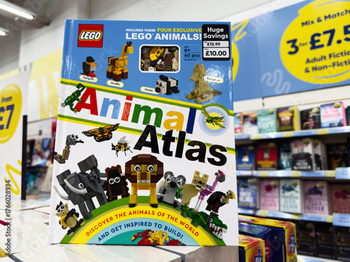 © AS Photo Family, Naklejka premium Animal Atlas by Lego: colorful children book of animal figures and Lego toys for learning