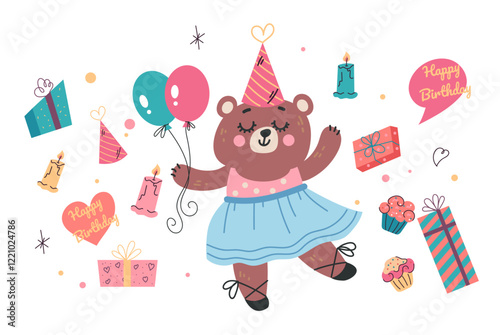 Fototapeta premium Animal birthday party celebration concept. Vector isolated graphic design...