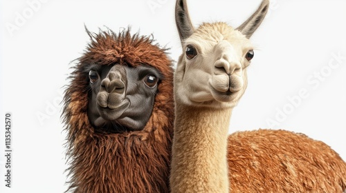 Obraz premium Animal Feathery Companionship Llama with Hen on a White or Clear Surface PNG...