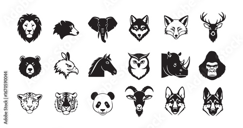 © Smithstar, Naklejka premium Animal head silhouette icon bundle illustration