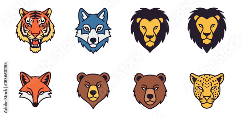 © voppo, Fototapeta premium Animal heads set vector illustrations wildlife design elements isolated