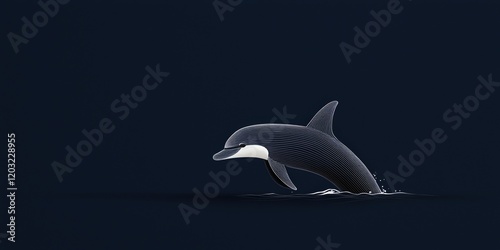 © CoreVisuals, Obraz premium Animal illustration style concept. Dolphin swimming gracefully in dark waters with abstract patterns.