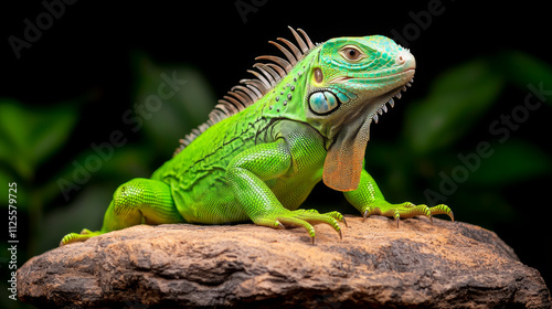 Obraz premium Animal kingdom rendering. bright green iguana basking on sunlit rock,...